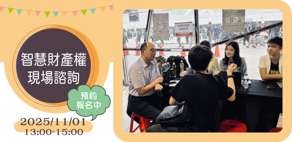 「智慧財產權現場諮詢」再次邀請到政大科技管理與智慧財產研究所 陳老師與其團隊來到 PF43 現場,提供免費一對一諮詢,協助你釐清創作中最常見的法律問題,智慧財產權並沒有大家想像的那麼艱澀,而是你我都必須知道的知識喔!